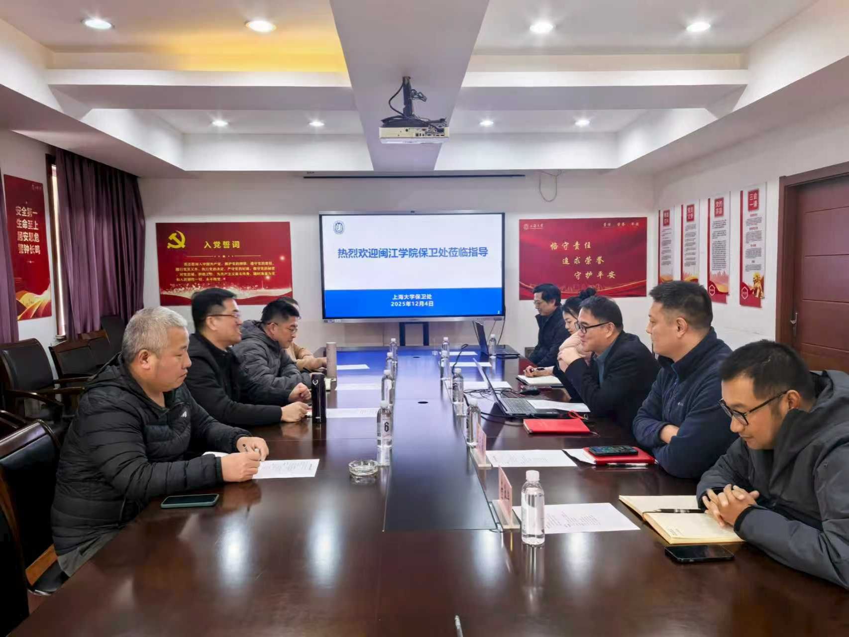 近日,福建闽江学院保卫处陈纯副处长一行赴上海大学宝山校区,就高校安全治理体系和治理能力现代化开展专题调研。会议由上海大学保卫处副处长王国正主持,相关科室负责同志参加座谈。