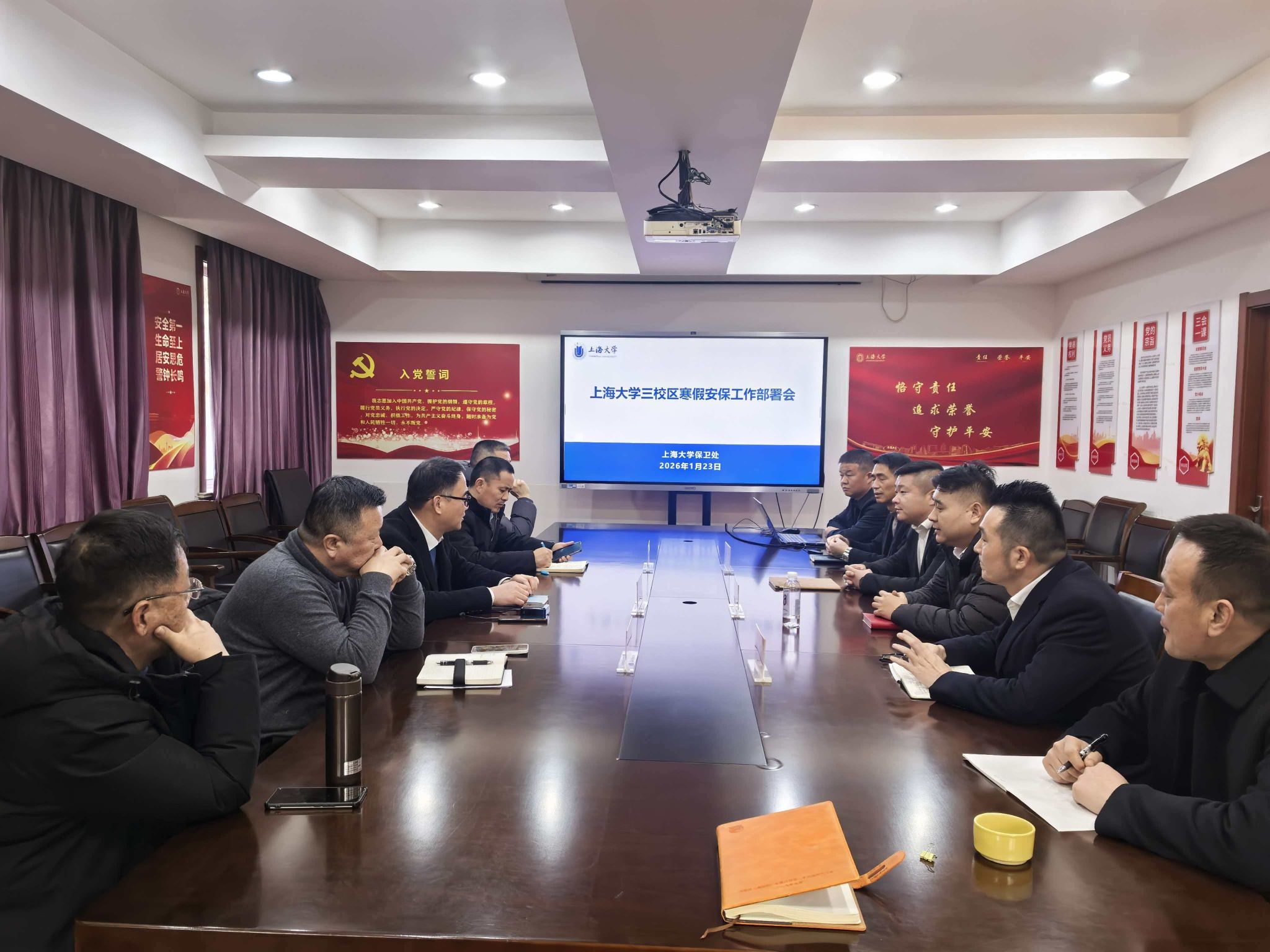 为切实做好寒假期间校园安全稳定工作,1月23日,保卫处召开三校区寒假安保工作部署会。保卫处副处长(暂主持工作)王国正、副处长赵俊、王天炼、各校区安保负责人、保安公司负责人及相关科室人员参会。