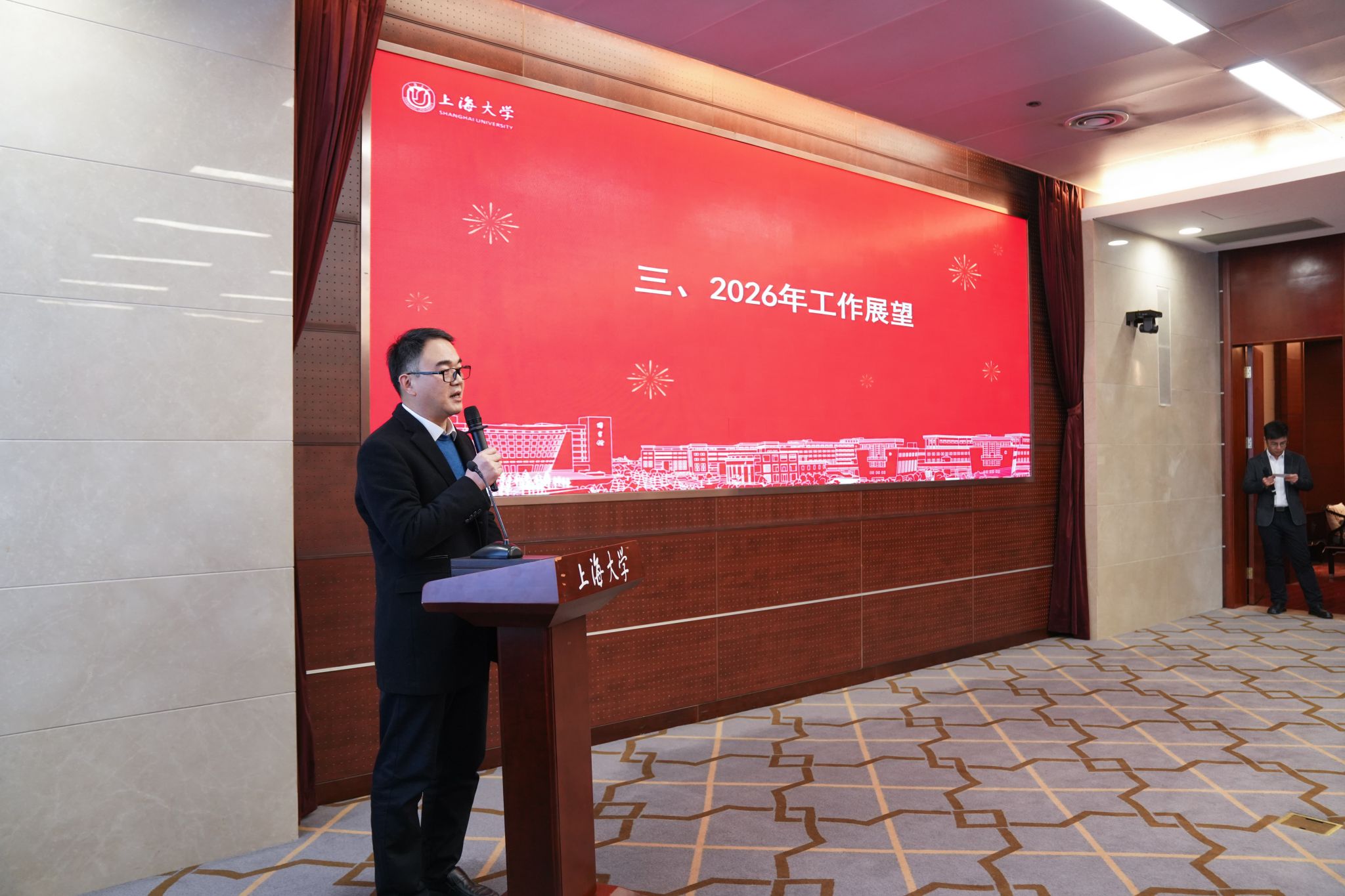 2026年1月23日,上海大学安全保卫工作2025年度总结暨2026年度展望会在乐乎新楼思源厅顺利召开。校党委常委、副校长王从春出席会议并讲话,资产与实验室管理部部长王林军,后勤保障部部长孟祥栋,党政办副主任、信访办主任凌长臣,党委本研工作部副部长、研究生工作处处长徐义圣,党委宣传部副部长、精神文明办主任何金伟,学院代表、保卫处全体人员及保安公司代表参会。