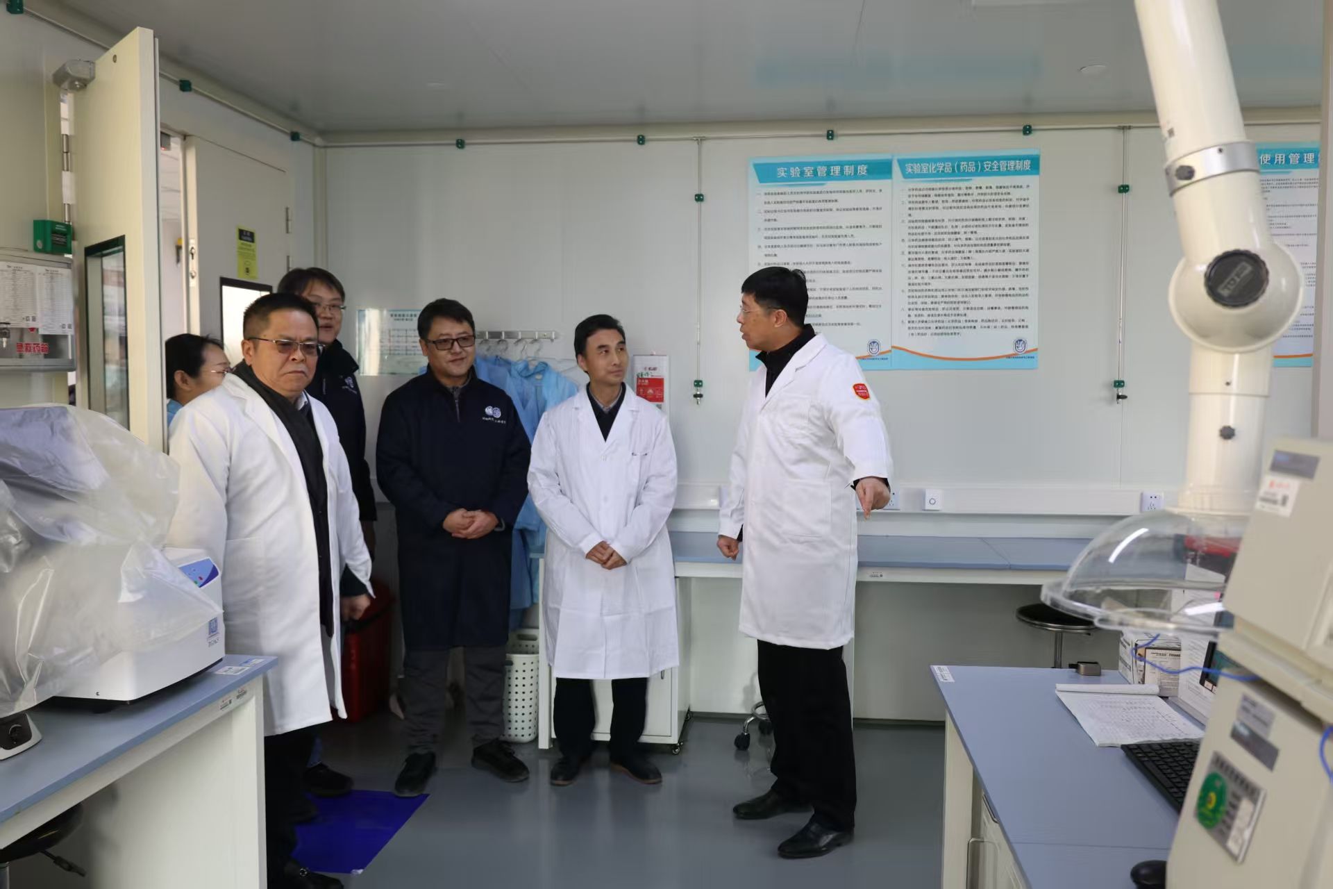 在前期各单位自查基础上,结合寒假春节安全工作特点,检查组先后深入学院实验室、学生宿舍、施工现场和食堂等场所,重点对实验室安全、宿舍安全、施工安全和食品安全等关键领域实地开展安全检查。检查组认真听取各点位负责人关于寒假及春节期间安全管理、风险防控措施及应急预案准备情况的汇报。 在材料学院实验室,校领导听取学院关于寒假期间实验室开放和人员留校情况,重点查看危险化学品存储、实验室管理制度落实情况。吴书记认真询问材料学院寒假期间安全工作安排,强调要做好寒假期间实验室安全管理,未申请开放的实验室必须做到断水断电,开放使用的实验室认真做好安全巡查检查,要严格执行“双人”在场实验制度,实验期间不得脱岗,倡导学院建设安全样板实验室,强化安全防范意识,确保假期实验室开放安全有序。